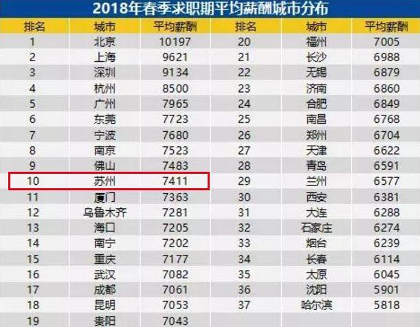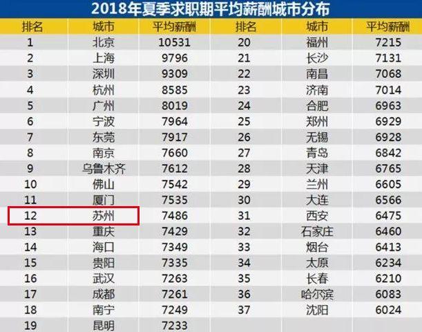 苏州最新平均工资位列全国前十。