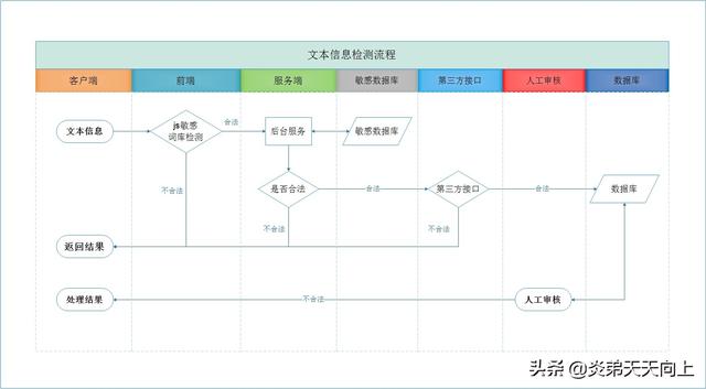 1、用户输入文本信息,前端通过敏感词库进行JS检查判断,如果不合法则返回结果;合法,进行下一步;
