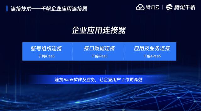 腾讯千帆“企业应用连接器”的根本目的是通过IDaaS、iPaaS、aPaaS等产品,帮助SaaS厂商解决互联互通、高效开发的问题,从而吸引SaaS合作伙伴拓展生态,进而用生态带动云计算业务的增长空