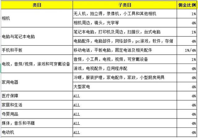 Lazada平台对卖家订单的佣金会根据不同的产品类别而有所不同,如下表所示: