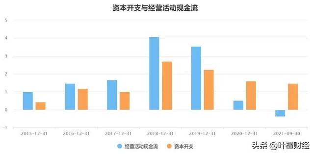 2021年,虽然营收和利润有所改善和恢复,但现金流7年来首次为负,经营活动产生的现金流远低于资本支出,即公司虽然在盈利,但实际上很难有现金存款。
