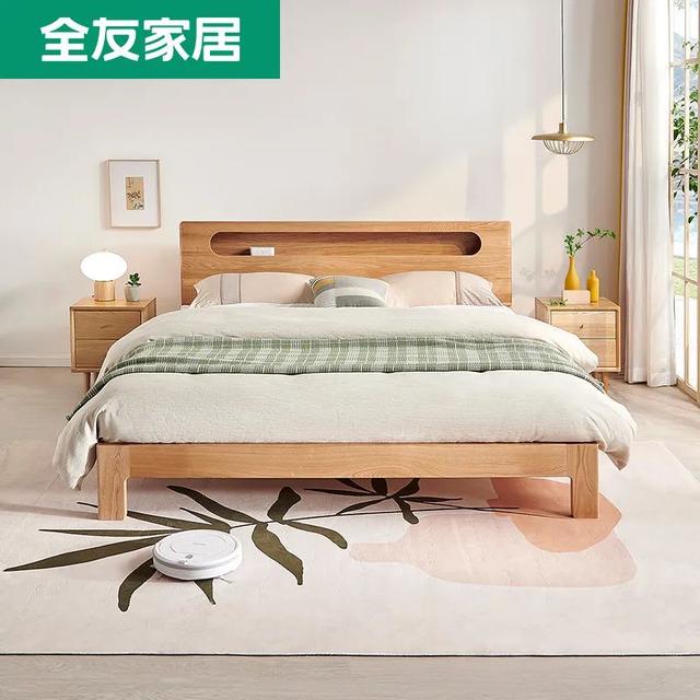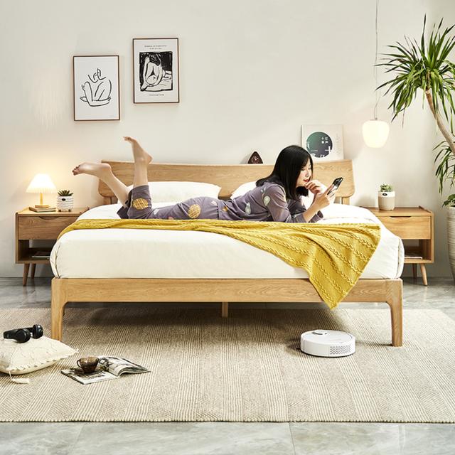 实木床采用曲美的北欧橡木双人床,采用曲美自己的弯木工艺,美观又符合人体工程学。它由北美进口的橡木制成,非常光滑圆润。