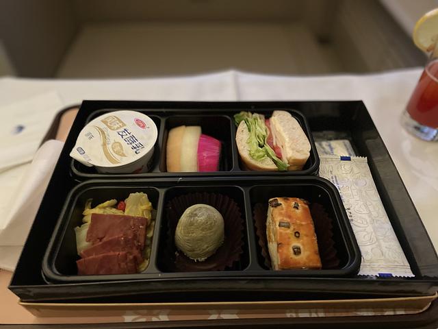餐食和商务舱一样。上次成都飞回来吃的同样的礼盒,真的很难吃。我点了一杯CC,以为会得到一杯特别的饮料。我觉得来一杯特制的番茄汁是可以接受的,比血腥玛丽更容易接受。哈哈哈。雨后北京的夕阳也很美。