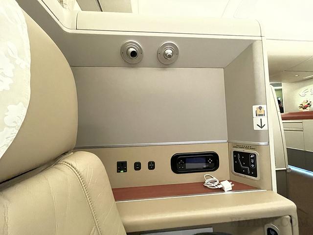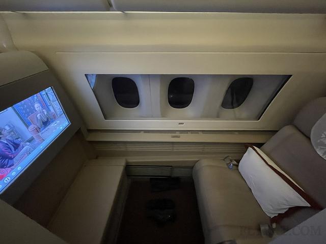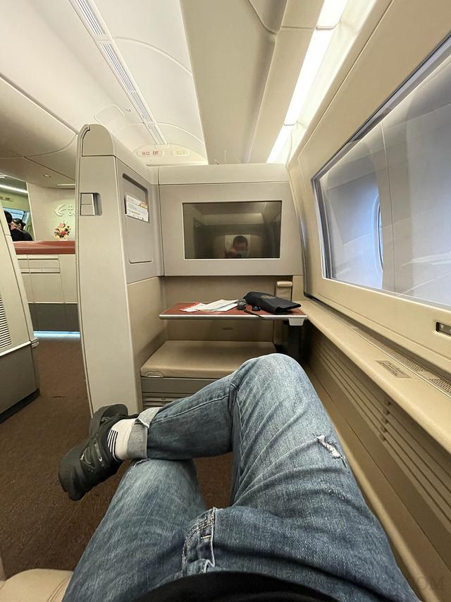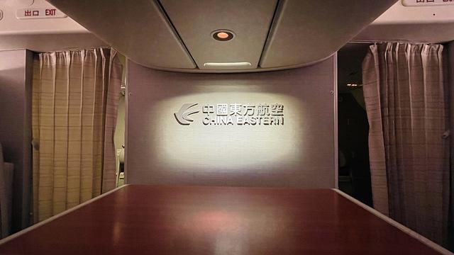 东航的旗舰头等舱一共6个座位,前两个后四个,储物在前排中间,后面商务舱大佬的部分行李也在那里。我坐在2L,同一个船舱里有一个萝莉。没有其他乘客。她一直在用相机拍照。