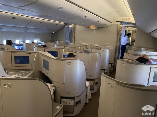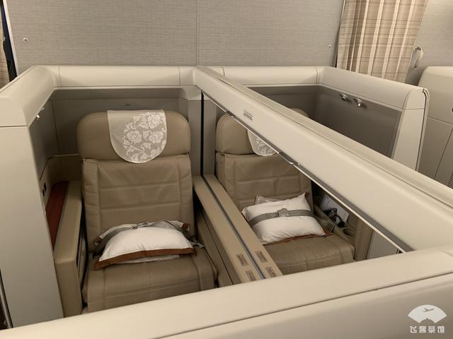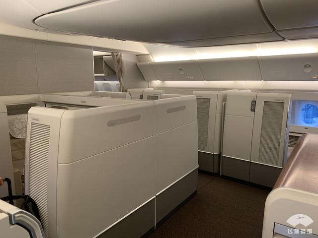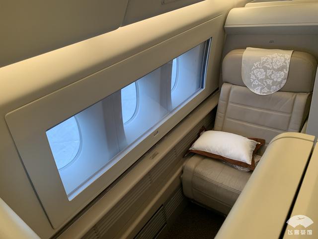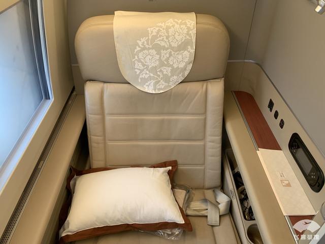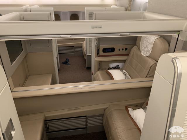 在46号登机口登机,在V2候机室下电梯,仅几步之遥。那一天,上座率不高。二舱空座位是一半,濠头上座率2/6。7W头等舱采用的是半阳台套房,在私密性和空房间方面都比后面商务舱的十二宫卷云防鱼刺座椅遥遥领先。此外,取消了头顶行李架,并使用储物柜来增加空空间。同时推拉门内部还有一个小储物间空间。