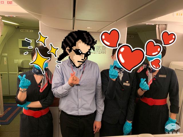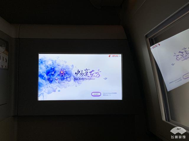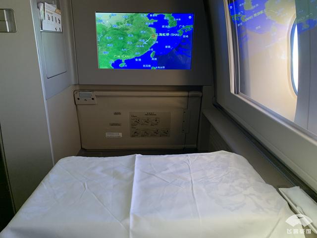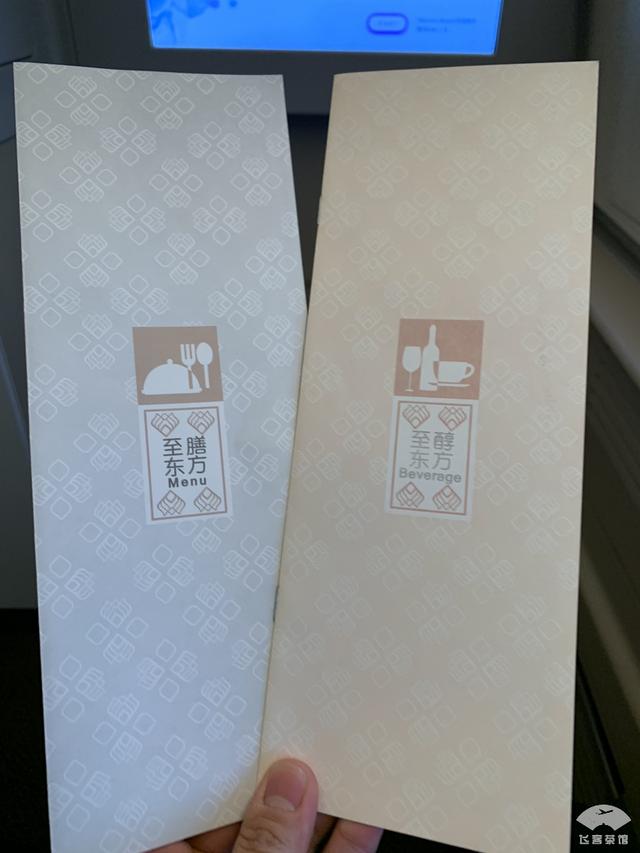 座位上的毯子和枕头都准备好了,但是东航二舱没有主动提供拖鞋的消息已经传出去了。没想到精品路线的头等舱也没有拖鞋。当天执飞的飞行机组来自上海总部4号航班。CC送来了毛巾和迎宾饮料,我把Flightlog交给了机组人员一份小礼物。