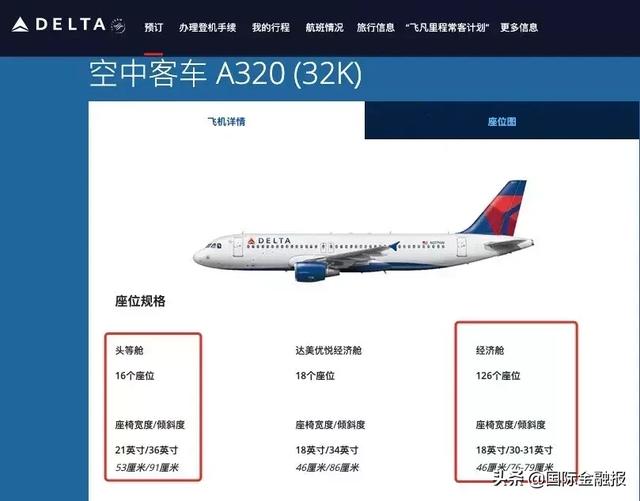 座椅宽度方面,根据美国达美航空空官网数据,A320客机头等舱座椅宽度为53 cm,倾斜度为91 cm,而经济舱相关数据仅为46 cm和76-79 cm。这意味着旅程越长,头等舱就越舒适。