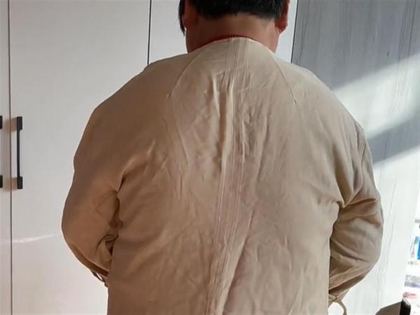 澎湃新闻记者在视频中看到,裴女士的母亲买了一件米色风衣。因为没有熨烫,衣服上有许多皱纹。老人穿上后,就像穿了一件大外套,让人完全看不出这是一件风衣。在视频小品中,裴女士自己调侃自己的母亲,说自己穿上这件衣服,还以为母亲要去屠宰场。