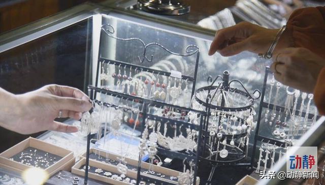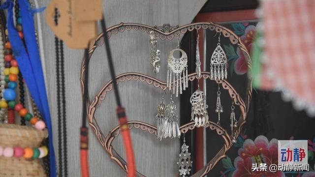 在松桃苗疆工艺广场的手工银饰店里,一件件极具特色的苗族手工首饰,银梳、耳环、手镯、戒指等整齐地陈列在橱窗里。成双成对的顾客正在试穿自己喜欢的商品,并为自己喜欢的对象精心挑选礼物。