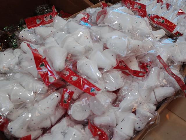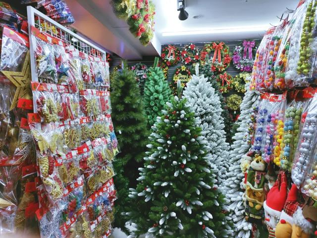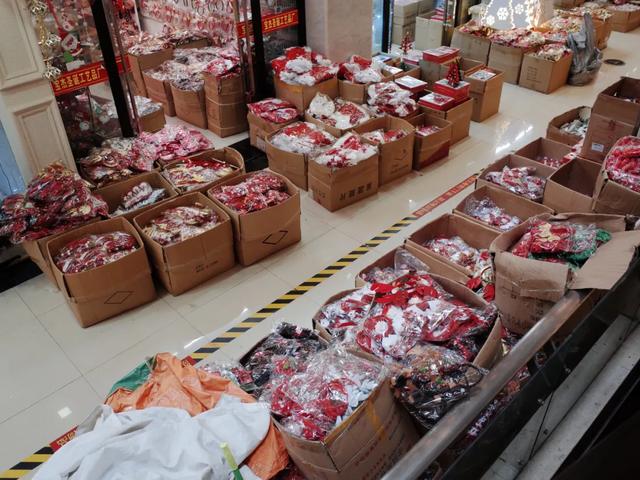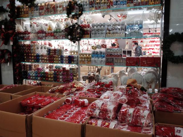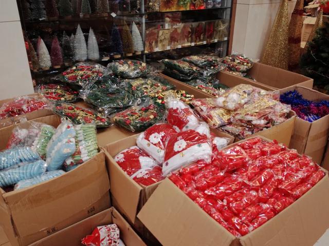 在大城市,圣诞用品和装饰品都被精心陈列,但在这里我们完全不谈这些。一家店门口经常堆着几十个箱子,有地方堆就好了。