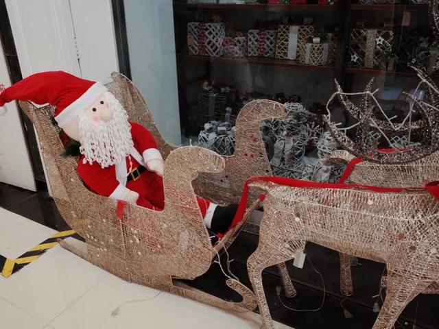 圣诞商店外面堆了很多圣诞鞋。我们以前参观盒马的时候就见过这种情况。如果大小合适,对于桌椅的脚来说会很可爱。