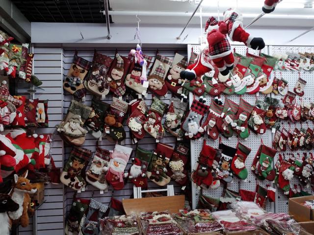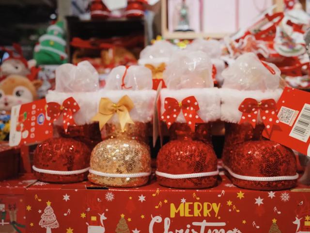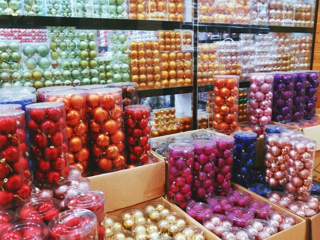 在市场上,这些圣诞用品大多是批发的。不过门口箱子里堆的很多货都是可以零售的。如果想家里有特别的圣诞气氛,或者公司是做圣诞用品采购的,找1688上的义乌供应商比较靠谱。