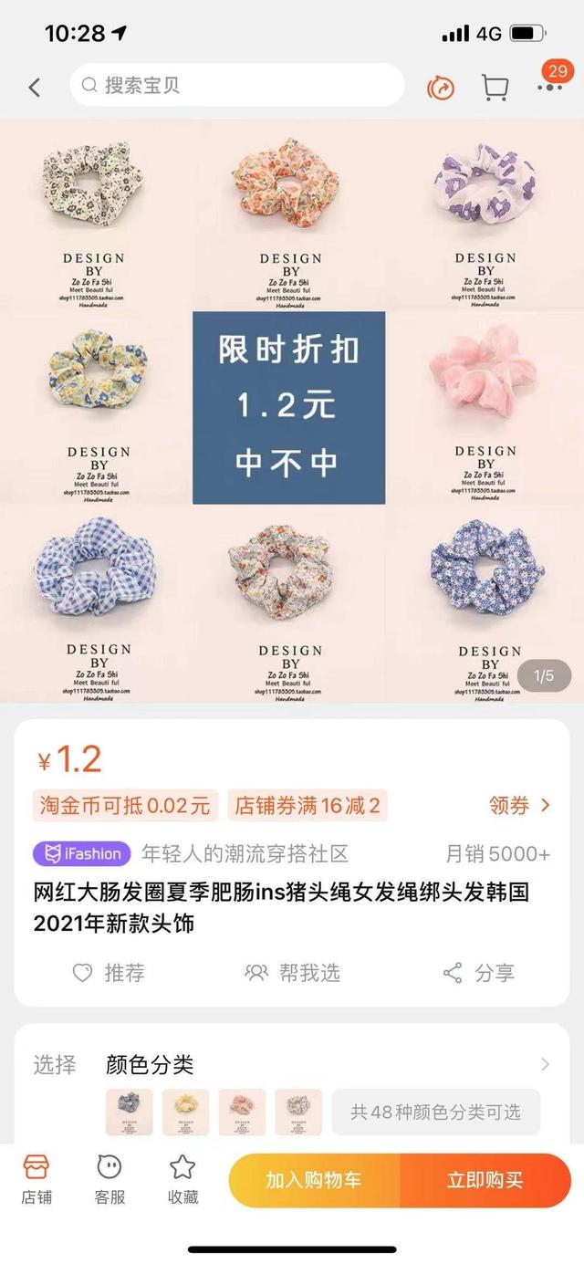 年初,某大肠发带因网络名人在社交平台上的美照火了一把,随后网络名人开始晒发带照片,淘宝后台开始出现相关关键词搜索。陈庚平说,款式都很普通,但是女生的照片特别有味道。他们开始宣传这个发带,定价不高。款式很多可以选择,2月份卖了10多万件。