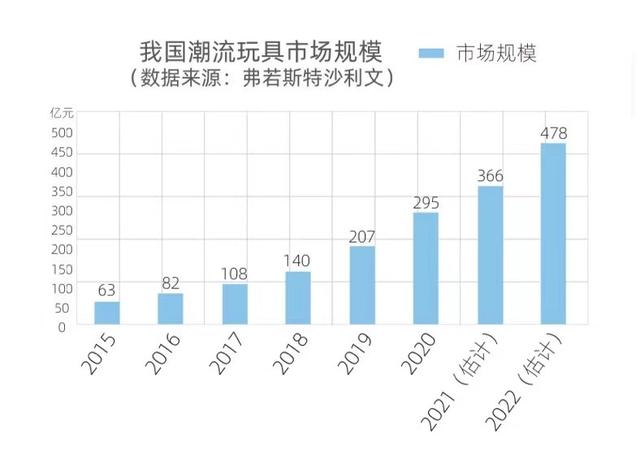 2022年产业规模将达到478亿,POP MART引领潮流市场。