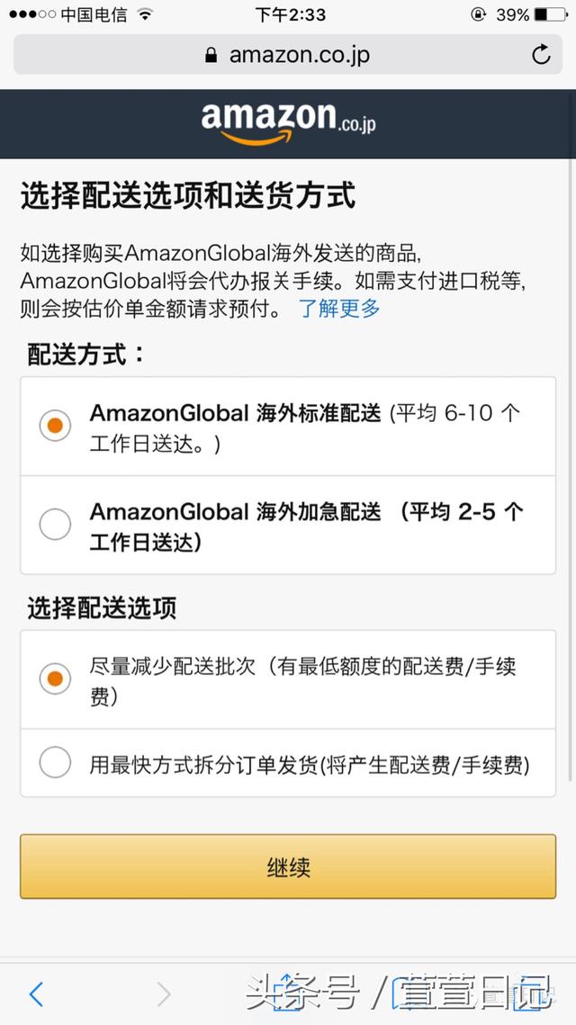 接下来,选择交付方式。有两种选择:海外标准递送和紧急递送。