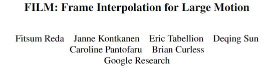 最近,谷歌研究团队提出了一种新的帧内插模型FLIM,可以在运动差异较大的两幅图片之间进行帧内插。