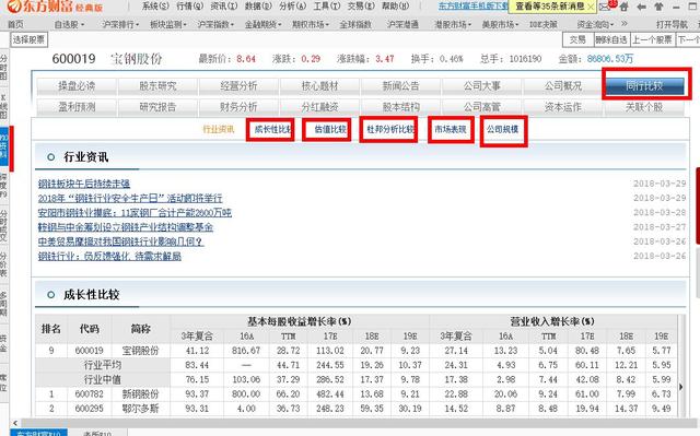 判断上市公司的行业地位,可以使用报价软件工具,点击F10,在行业对比中做出判断。