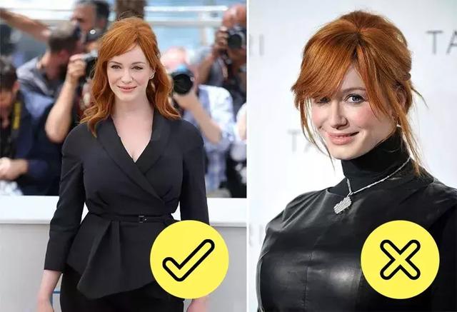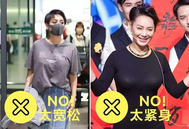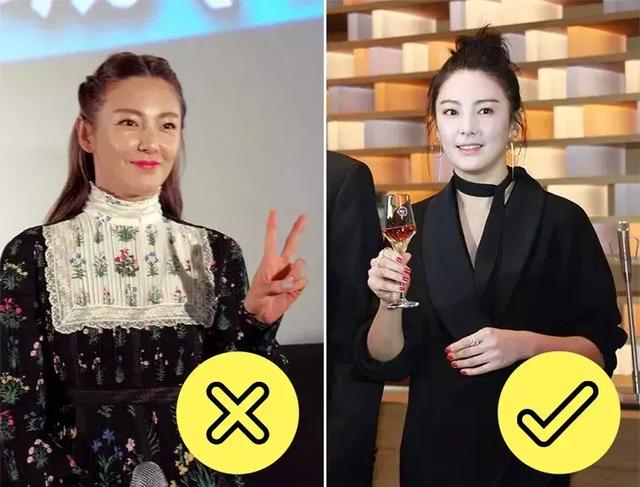 领口宽的话,可以抵消上半身的体积。如果你想追求一些变化,你可以像右边的张雨绮一样装饰领口。注意:是小巧精致的装饰,不是浮夸浩繁。
