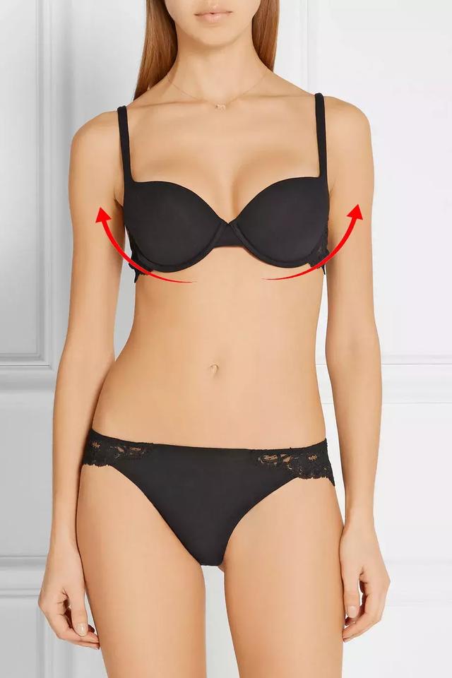 东张西望俗称“外扩型”,乳头指向双臂的话就是胸型。所以所有有聚拢和集中功能的文胸都很适合你,很容易挤出一条沟来。