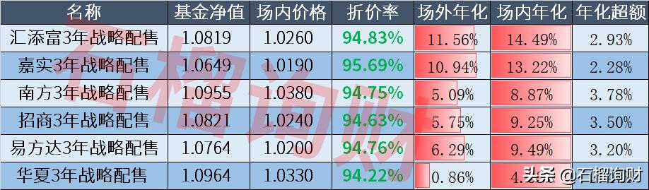 但是前面说的场内战略配售,这两天恐慌性抛售后的折价率,太诱人了,比债基诱人多了。