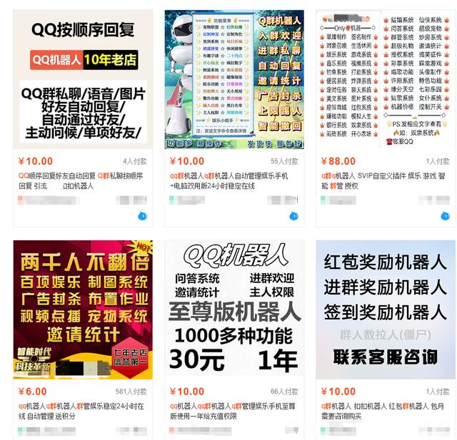 制作人团队扩大后,机器人的“能力”逐渐壮大。机器人通过获得QQ号的部分权限,可以做越来越多的事情。我今天从淘宝上买的Q群管理机器人就是这类的代表。