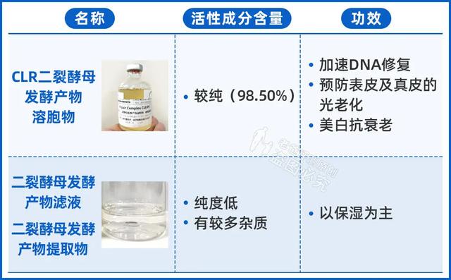 还有一些产品,在详情页的宣传页写着“裂殖酵母修复精华。没有一滴水”和“高浓度复合酵母精华”。查了成分表,都是裂殖酵母发酵产物“滤液。”...