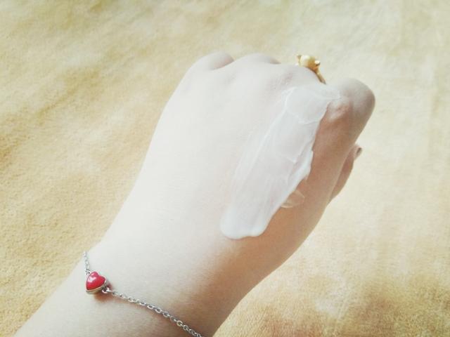 因为轻薄,眼霜非常容易推开,特别滋润。从图中可以看出膏体的轻薄感。另外,我觉得这是用量不对,因为膏体本身比较轻,容易推开,黄豆大小的眼霜两眼都够用。