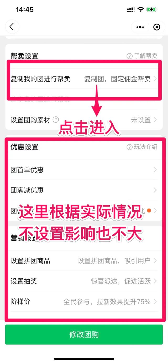 点击进入第一个,复制我的群帮你开始设置。下面红框不设置也没关系,就是各种优惠。其实不需要太复杂,便宜,比什么都好。