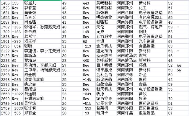 卫龙的刘福平和刘卫平首次上榜,并列河南榜第二名,总榜第223位。此外,还有李爱珍、邵增明,动力钻石母子,蜜雪冰城的、,翔宇医疗的何永正、郭等。