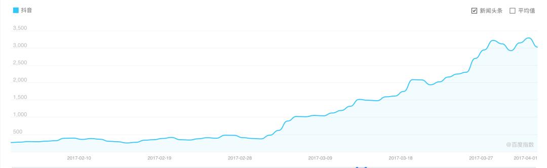 注:上图为2017年2月至2017年4月Tik Tok百度搜索指数。图片来源:百度指数。