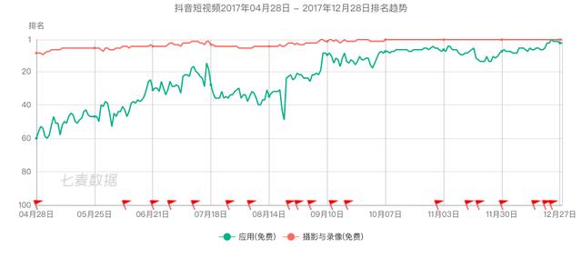 注:2017年4月28日至2017年12月28日,Tik Tok排名趋势发生变化。图片来源:麦琪数据。