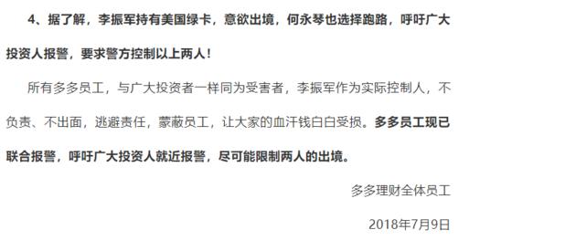 值得一提的是,推文提到,很多理财员工已经联名报警,他们和投资者一样都是受害者。目前他们还拖欠工资和社保,大部分员工和家人朋友的投资款无法偿还和提取,损失惨重。