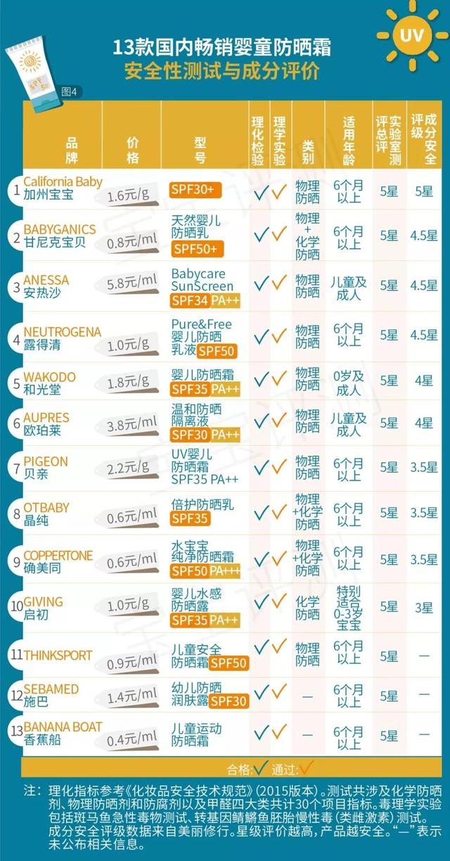 深圳品质消费研究院去年曾经做过一个测试,因为只涉及到安全性测试,所以测试结果仅供大家参考。安全和防晒不一样,有的可能相反。