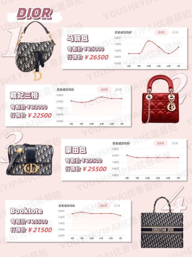 马鞍马鞍包在二级市场的市场价格前段时间有所下降,最近开始缓慢上涨,而其他三款经典包的市场价格基本变化不大。