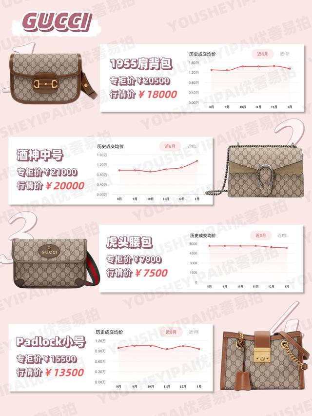 1955作为GUCCI的流行包值,没什么好说的。最近酒神巴克斯的价格在二级市场开始慢慢上涨。