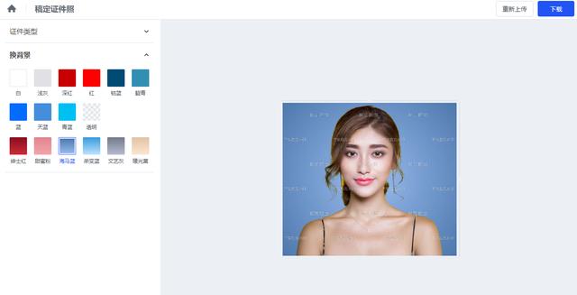 选择底部的“更改身份证照片的背景颜色”功能。照片上传后,它会自动识别,帮我们去除背景,最后选择任意颜色替换。