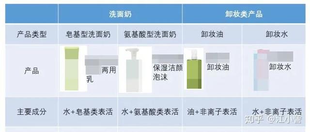 洗面奶和卸妆水的配方类似,主要依靠水和表面活性剂去除油渍。不同的是,在卸妆产品中,非离子表面活性剂更活跃,而非离子表面活性剂在清洁时主要靠增溶,阴离子表面活性剂在洁面乳中更活跃,阴离子表面活性剂在清洁时主要靠乳化。