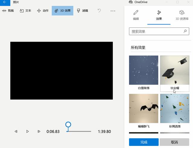 而且它还有一个3D效果素材库,里面有很多3D特效动画,可以直接添加到视频中,增强视频的高级感。