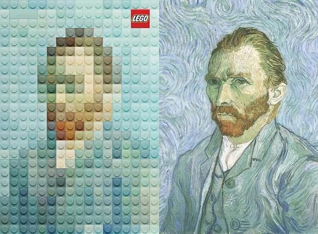 好了,科普结束。其实乐高的精妙之处不在于把它建得越大越好,而在于激发人的想象潜能,这才是乐高的初衷。意大利艺术家马可·苏达诺(Marco Sudano)用彩色乐高积木精心再现了艺术史上一些伟大的绘画杰作,包括达芬奇的《蒙娜丽莎》、梵高的自画像、大家熟悉的戴珍珠耳环的女孩等。