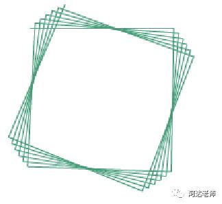 当旋转次数增加时,图表会生成一个以外夹角为边的圆,每次旋转都会由于角度的原因在里面再切出一个圆。因为旋转是围绕一个点进行的,所以生成的两个圆的中心是相同的。