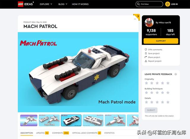 截至撰写本文时的2022年1月,这个项目在Lego IDEAS官网上已经达到9138个赞,距离征集日期还剩185天。可以说已经基本预留了一个乐高创意量产的最终名额。考虑到IDEAS曾经有一个21311兽王的超级机器人题材,近期再来可能会有点审美疲劳,但其精致的设计相信会对有竞争力的量产有很大的推动作用。