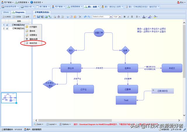 只有以超级管理员身份登录时,才会显示右侧显示所有用户流程图的三个菜单。