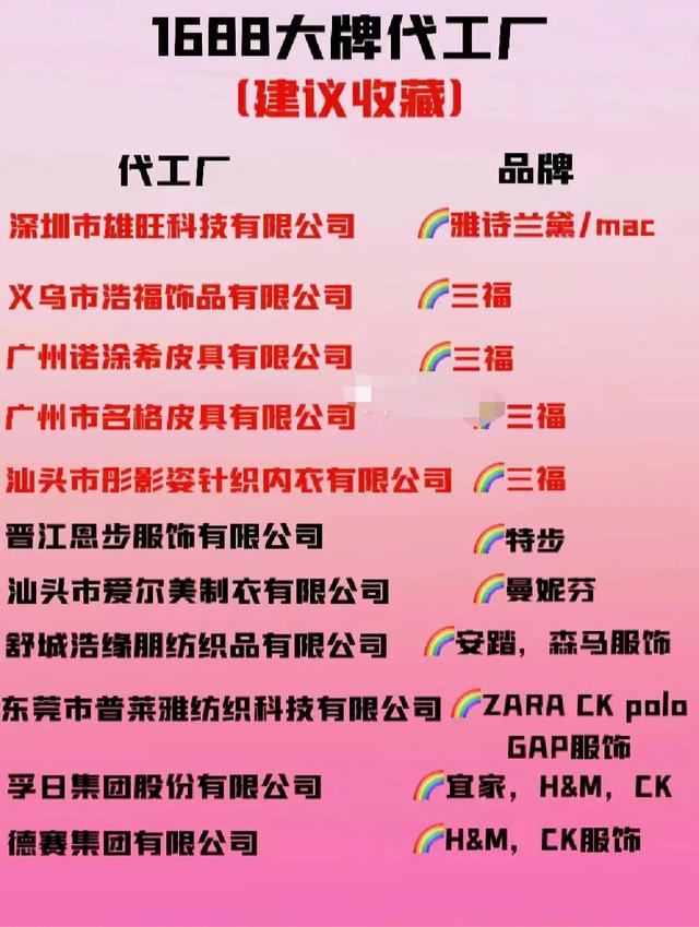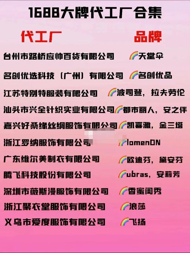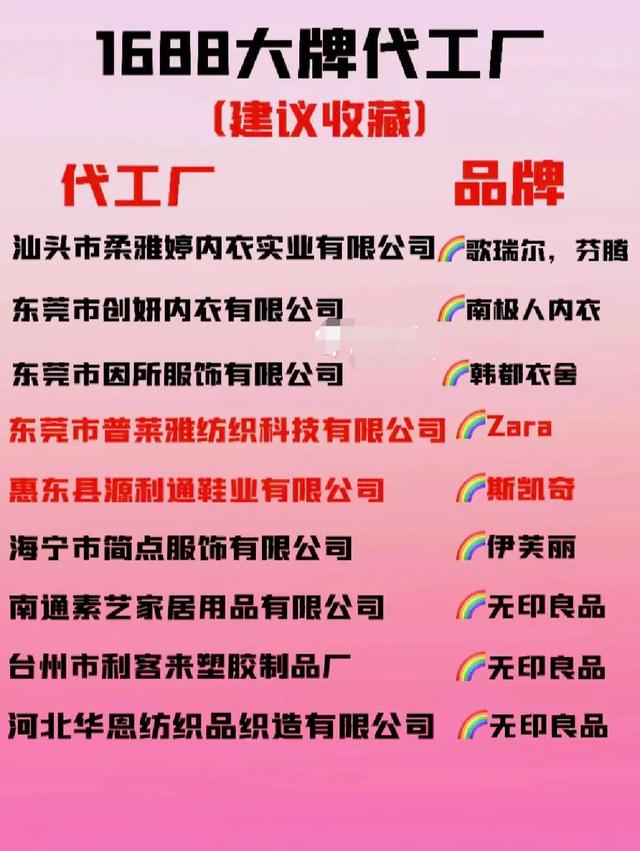 代工厂和相应的品牌如下