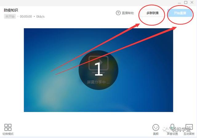 7.开始直播。一切准备就绪后,我们将点击“开始直播”。倒计时3秒后,直播将正式开始。学生将看到老师的电脑屏幕,听到老师的讲课。