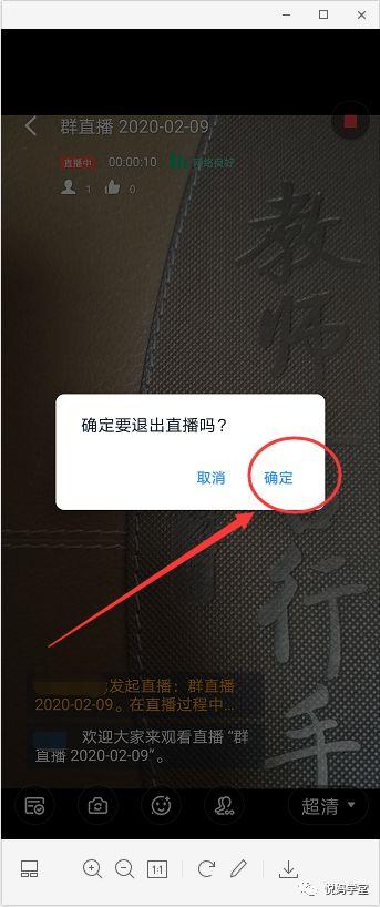 进入钉钉课堂群,点击“在线课堂”-“课堂直播教学”-点击“右上角红色方块点”-“确定”结束直播。