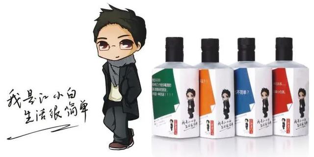 2012年,包装简单、口味清淡、适合休闲饮用的小曲清香型白酒“江”诞生。瓶子上还有一个带衣领、戴眼镜、文艺气质的卡通人物。他的名字叫姜。