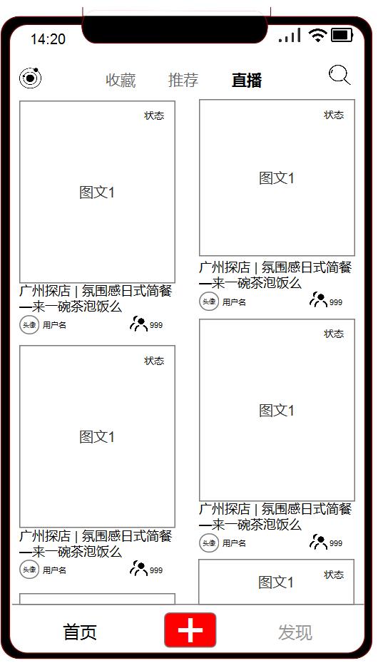 图6首页直播页面加直播状态和观看直播人数(状态:带货、直播、店铺搜索)