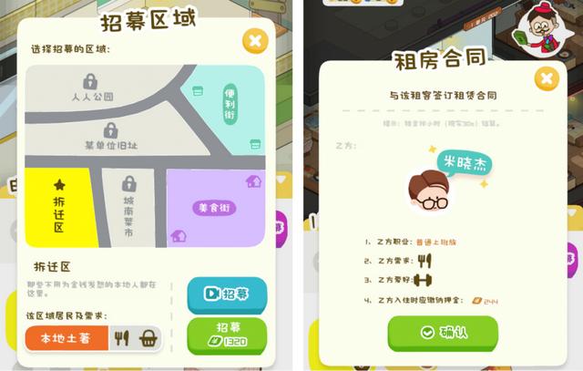 一开始只能招失业人员,房间设施都是从最底层开始的。后续收租可以不断新建房间,租客越来越多,租金自然越来越高。