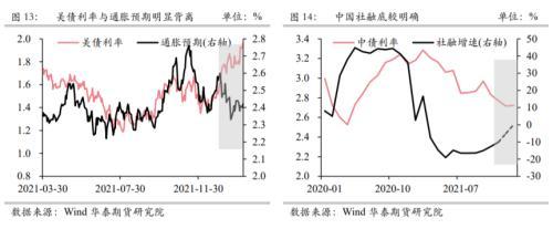 中美抗疫节奏不同,导致中美经济复苏节奏不同,使得两国货币政策出现明显分化,从而导致中美利率错位。当时中国债券利率跟随社会福利先升后降,而美国债券利率跟随通胀曲折上行。
