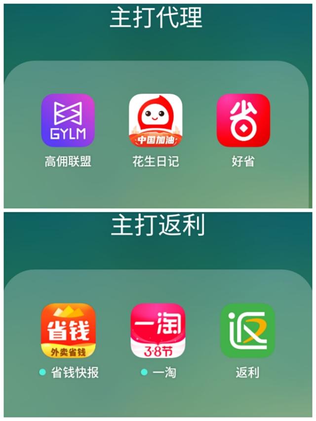 目前市面上的返券软件主要分为两类,一类是用来发展各级代理团队的App,一类是传统返利App。